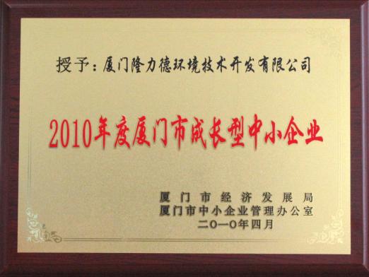 隆力德被授予厦门市成长型中小企业